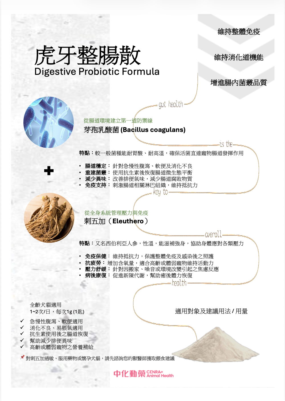 每公克含量 Bacillus coagulans 芽孢乳酸菌1X109CFU Radix Acanthopanacis Senticosi 刺五加萃取物2mg